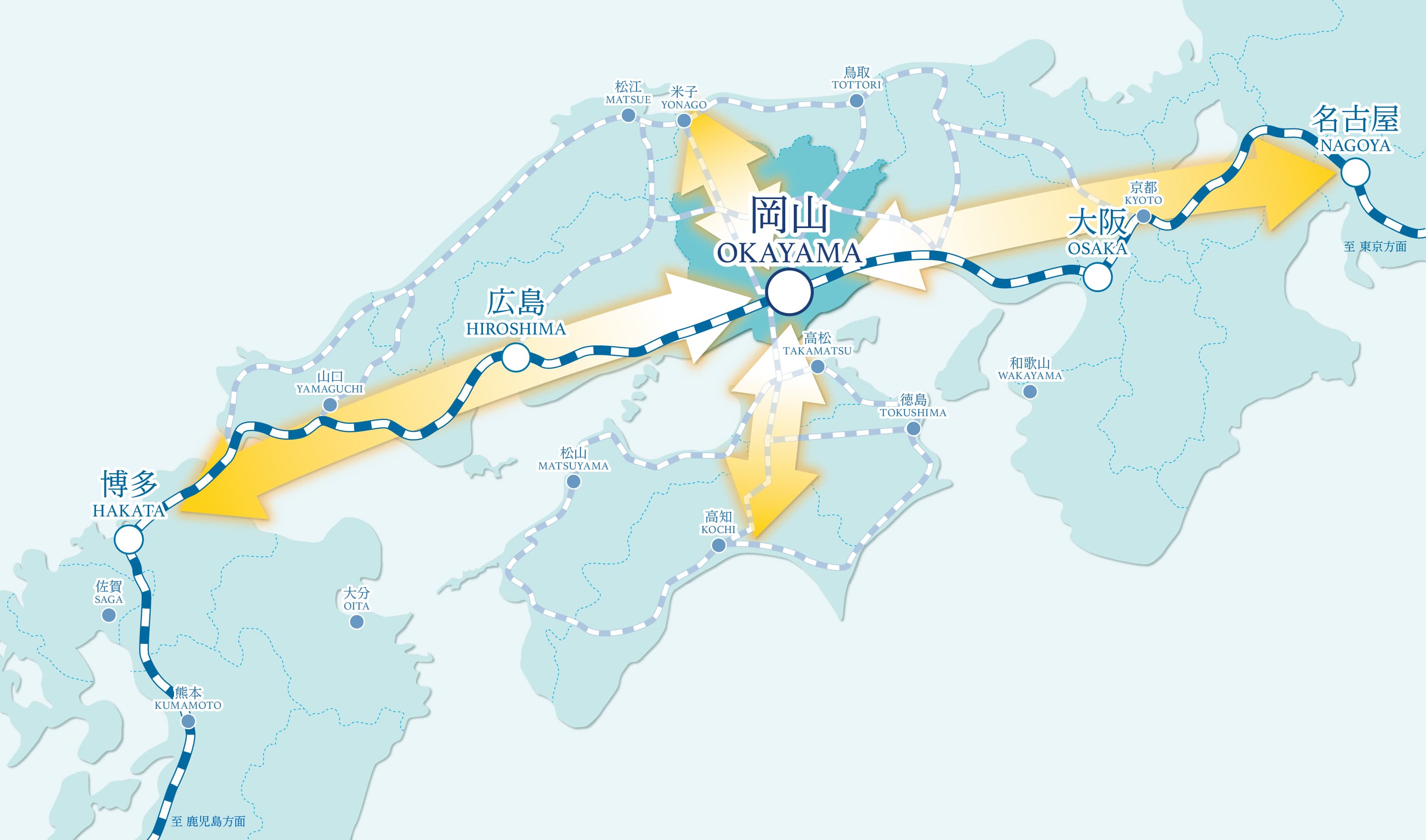 岡山市は、古くから中国・四国地方の交通の要衝・クロスポイントとして発展。